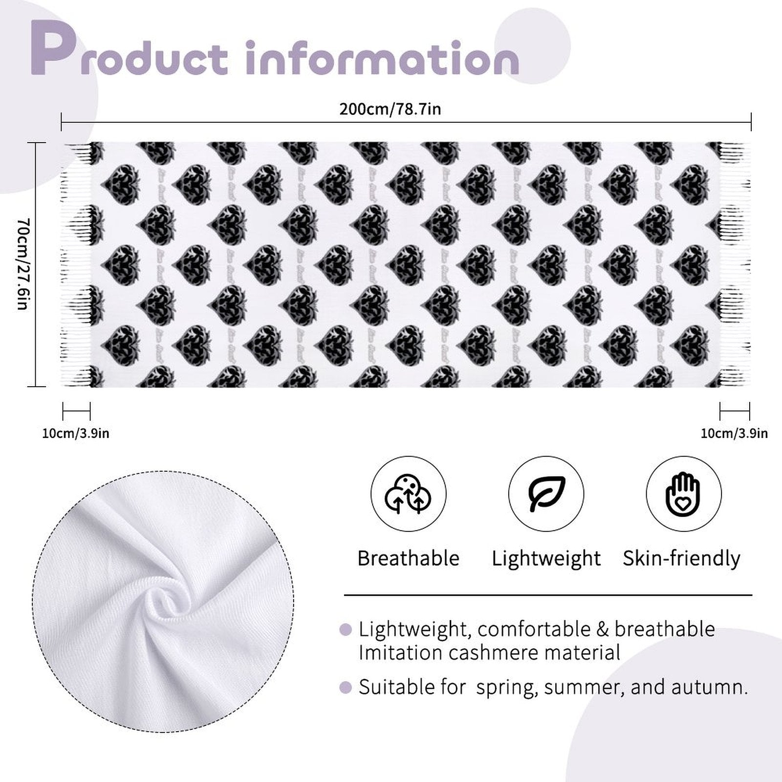 • 4.06 Oz. Made of Imitation Cashmere, known for its comfortable feel.